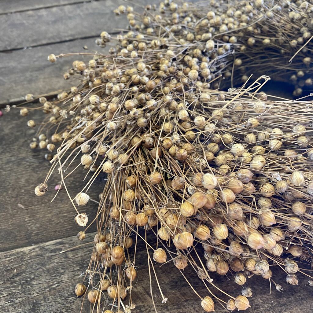 Vakker krans av lin. Diameter 30 cm. Kan sendes over hele Norge med postpakke.