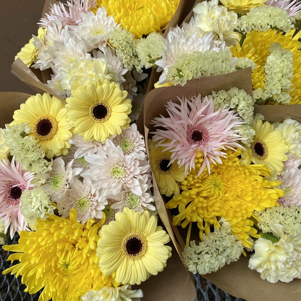 Bukett i gult og rosa!