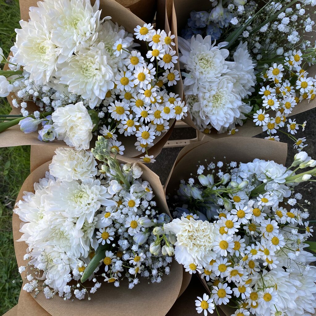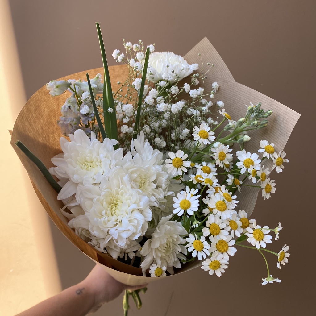 Luftig og lett bukett med sommerlige vibber! Varene kan variere, men form og farge forblir den samme.