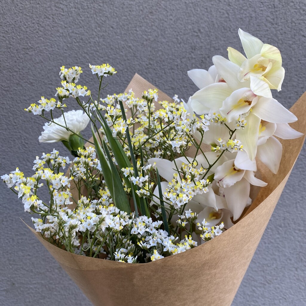 Nydelig bukett i hvite toner med orkide. RubyElise designer med de vakreste varene vi har akkurat nå!