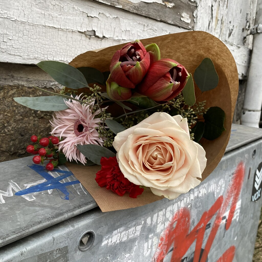 SISTE FRIST FOR BESTILLING MED LEVERING FØR JUL ER KL. 11.00 23. DESEMBER! OBS! Butikken er stengt 24. desember. Frekk blanding av lyserødt og rosa! Med den nydeligste rosen vi har sett(?), og klassisk julerød amaryllis - i godt selskap! NB: Sortene kan variere noe, vi tar forbehold om at vi kan gå tom for enkelte snittblomster; men vi holder oss innenfor samme fargeskala!