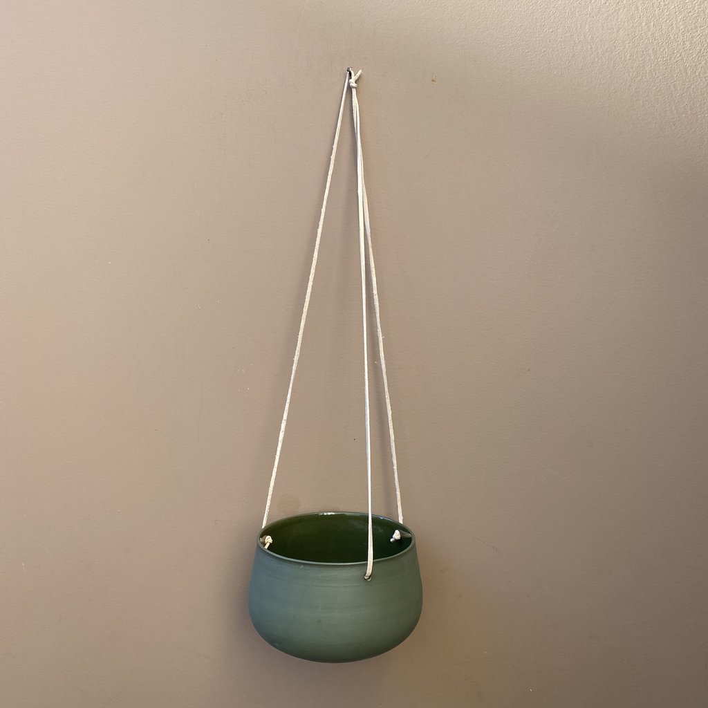 Ampelen fra keramiker Rita Egren har en delikat og minimalistisk silhuett, som passer inn i ethvert hjem og interiør. Fargen på denne er en mørk grønn. To størrelser er tilgjengelig: diameter 11 cm, og 12 cm. Rita Egren er en lokal Sandefjordskeramiker, og amplene er laget som et eksklusivt samarbeid med RubyElise Blomsterverksted.