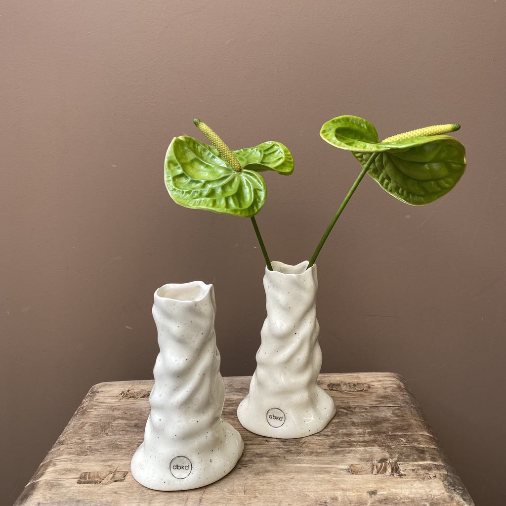 Vase fra dbkd i en vaniljefarge med blank finish. Perfekt til noen få stilker. ø4x15 cm.